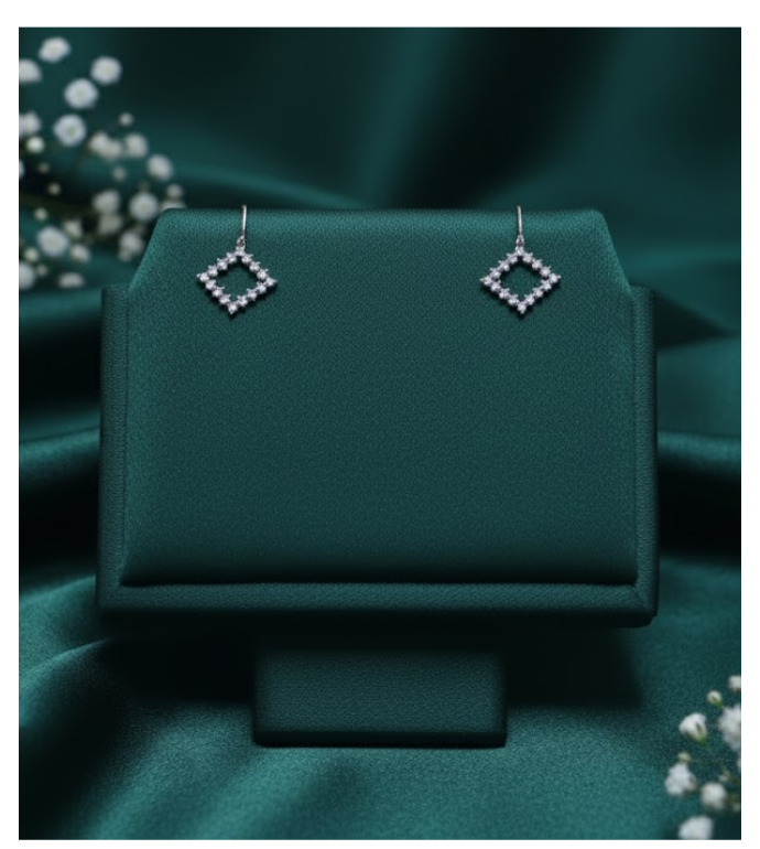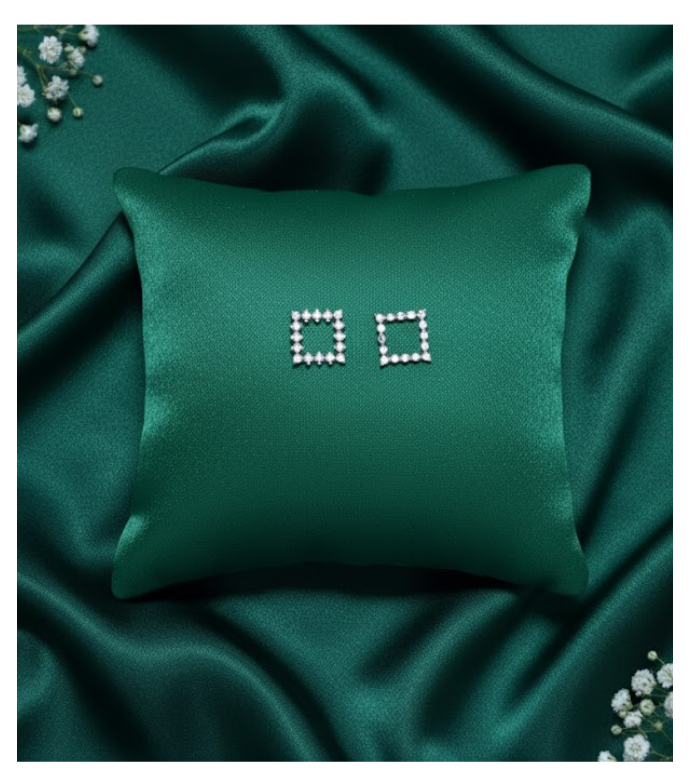 Embrace clean lines and modern sparkle with the Geometric Square Studs by Swareva Jewels. Crafted from 92.5 sterling silver, these minimalist earrings feature an open square silhouette, meticulously lined with brilliant-cut stones for a chic, contemporary finish.