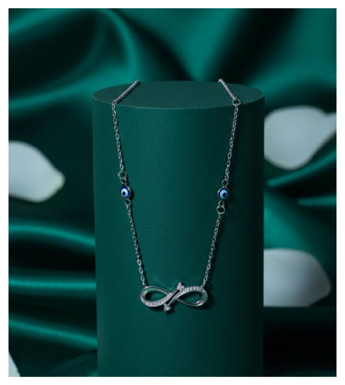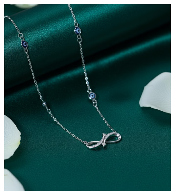 Carry protection and endless grace wherever you go with the Evil Eye Infinity Necklace by Swareva Jewels.
